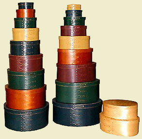 Shaker Boxes We have an extensive collection of Shaker Boxes that may be used for storage or simply to add a touch of color to your Shaker decorating. Many sizes and colors available.